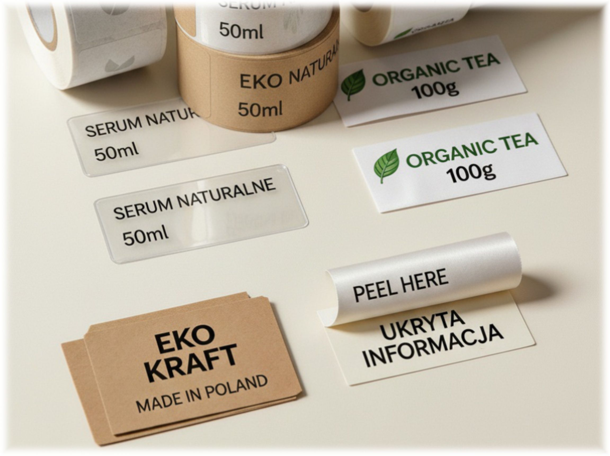 Oferujemy etykiety na folii samoprzylepnej, papierze oraz eko kraft.