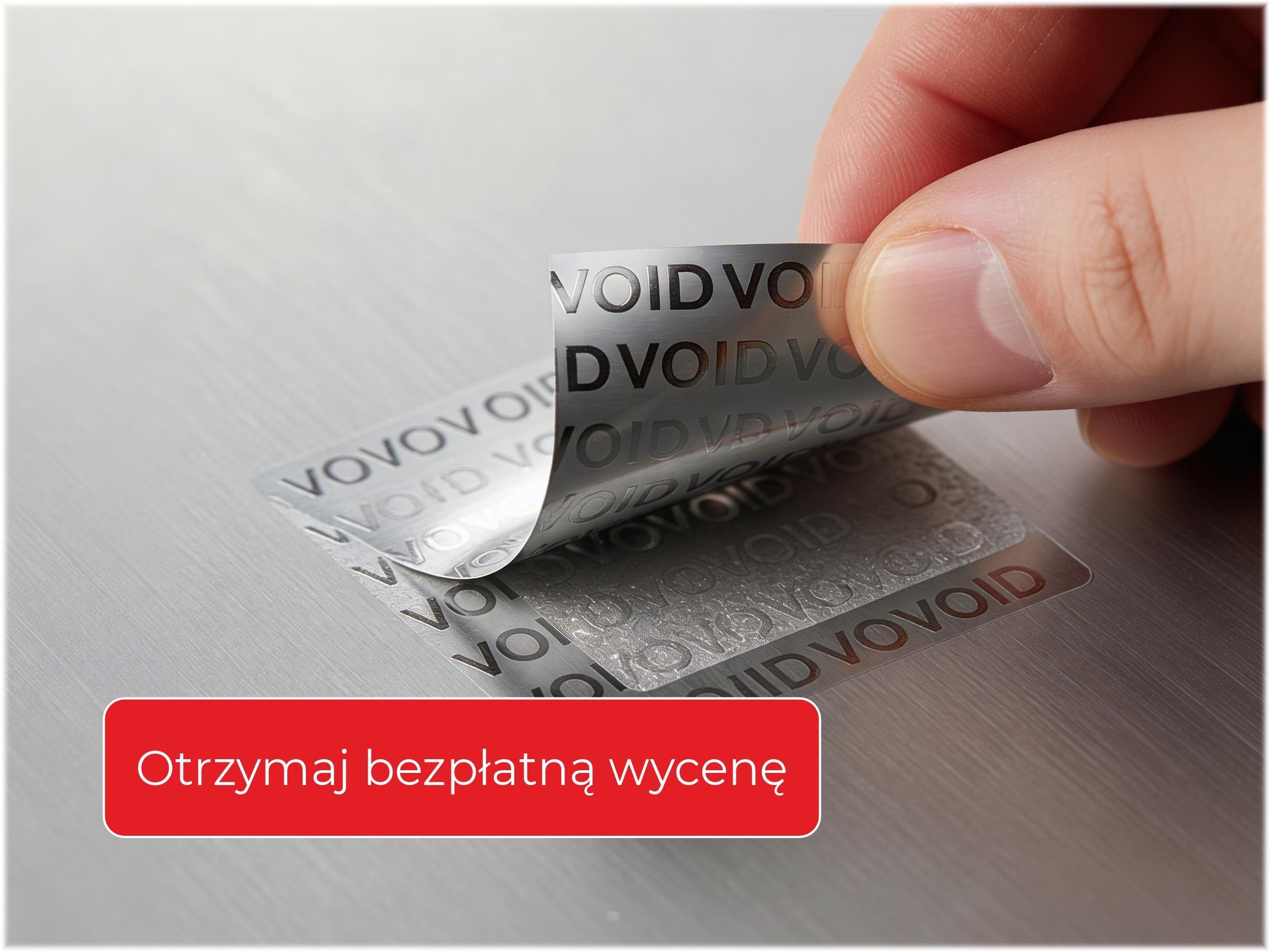 Druk naklejek plombowych – dostępne rodzajeNaklejki VOID – Pozostawiają napis VOID lub inny wzór po odklejeniu. Idealne jako zabezpieczenia gwarancyjne i kontrolne.