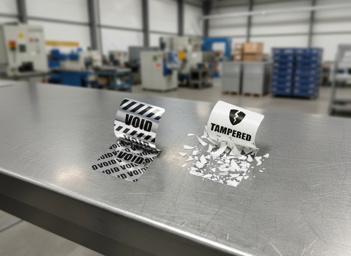 Po odklejeniu naklejki ulegają zniszczeniu lub pozostawiają ślad (np. VOID), co uniemożliwia ponowne użycie.